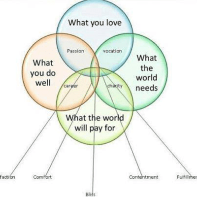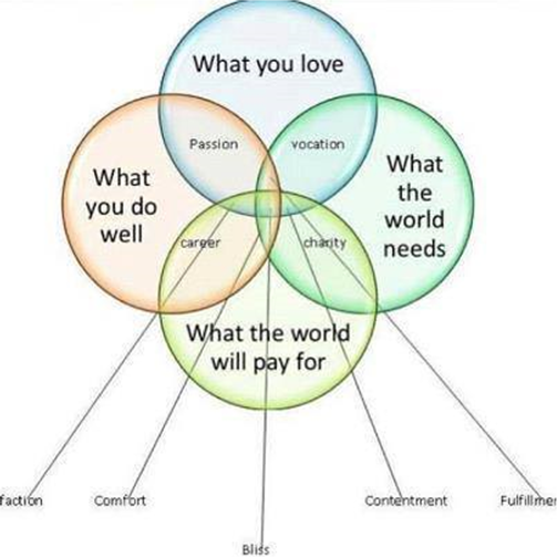 Interesting …. lifelong struggle to attain bliss – where what you love, what you do well, what the world needs intersects with what the world will pay for …………………